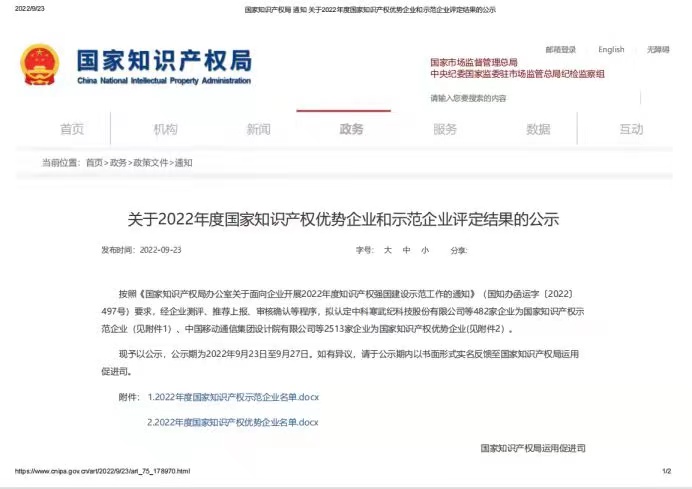 近日,國家知識產(chǎn)權(quán)局公示了2022年度國家知識產(chǎn)權(quán)示范企業(yè)的評定名單,博納斯威憑借在知識產(chǎn)權(quán)領(lǐng)域的突出優(yōu)勢,成功入選2022年度“國家知識產(chǎn)權(quán)示范企業(yè)”。