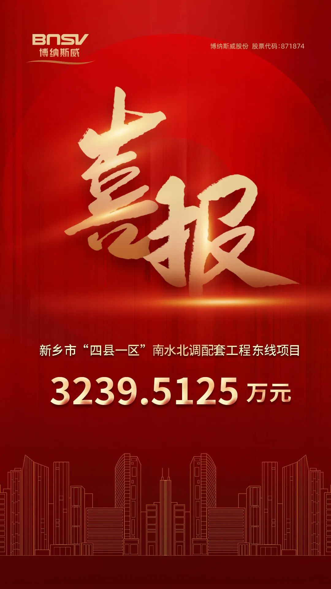 喜報!博納斯威中標新鄉市“四縣一區”南水北調配套工程東線項目3239.5125萬元