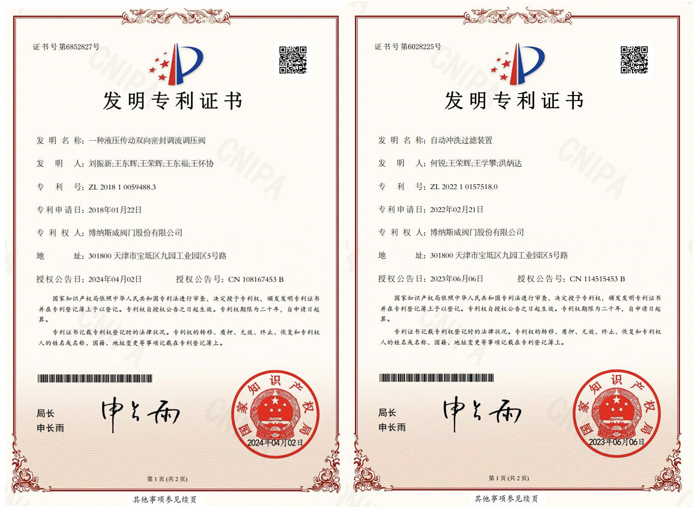 博納斯威閥門股份有限公司持續(xù)創(chuàng)新,近期,自動沖洗過濾裝置、軸流式雙級雙向調(diào)節(jié)閥、閥桿水平驅(qū)動式偏心半球閥、對沖消能軸流式角旋閥、一種帶有內(nèi)置阻尼裝置的消聲緩閉止回閥、一種防水錘蝶閥、一種輸入端帶有非同步鎖定機(jī)構(gòu)的驅(qū)動裝置、一種液壓傳動雙向密封調(diào)流調(diào)壓閥等八項新技術(shù),先后獲得國家知識產(chǎn)權(quán)局授權(quán)發(fā)明專利!迄今為止,博納斯威獲得專利總數(shù)量達(dá)到276項,其中發(fā)明專利27項,實用新型185項,外觀專利64項。
