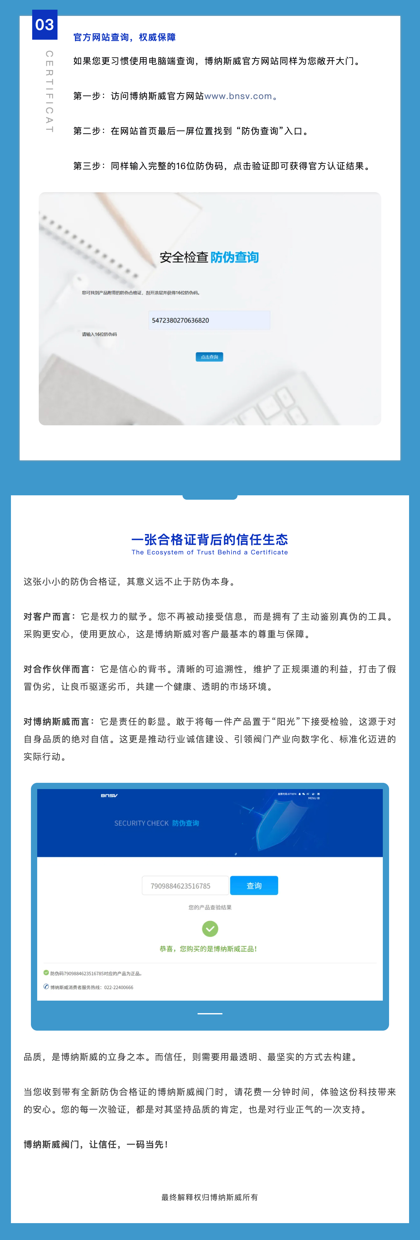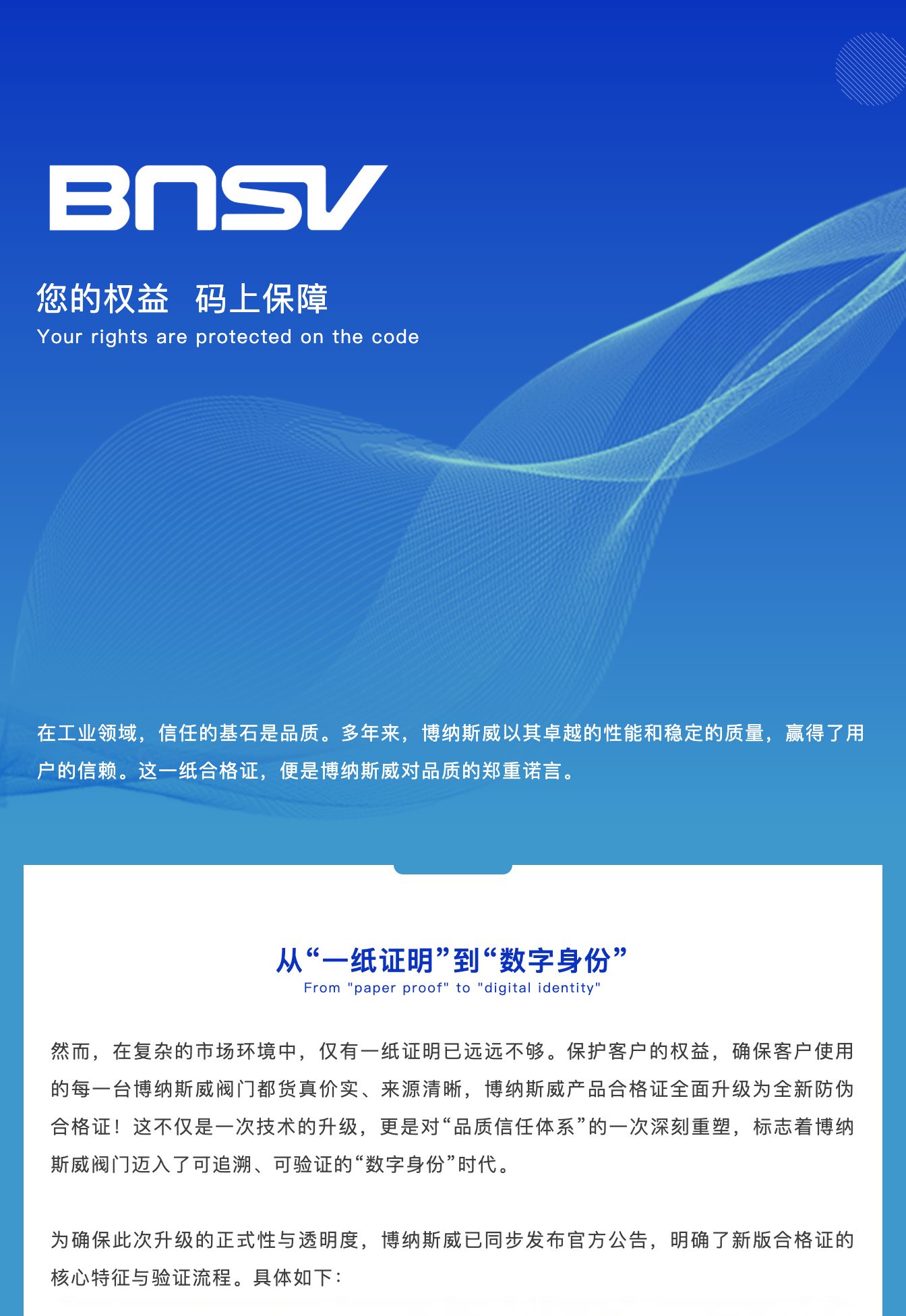 您的權益 碼上保障 | 博納斯威升級防偽合格證